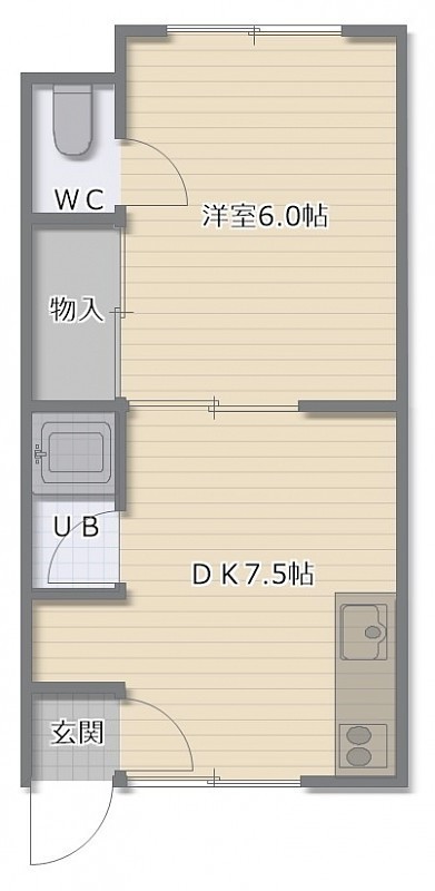 1DK(24.33m²)└ DK7.5帖 洋室6帖