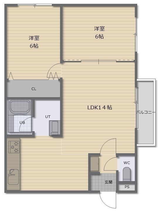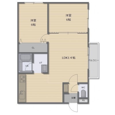 2LDK(56.4m²)└ LDK14帖 洋室6帖 洋室6帖