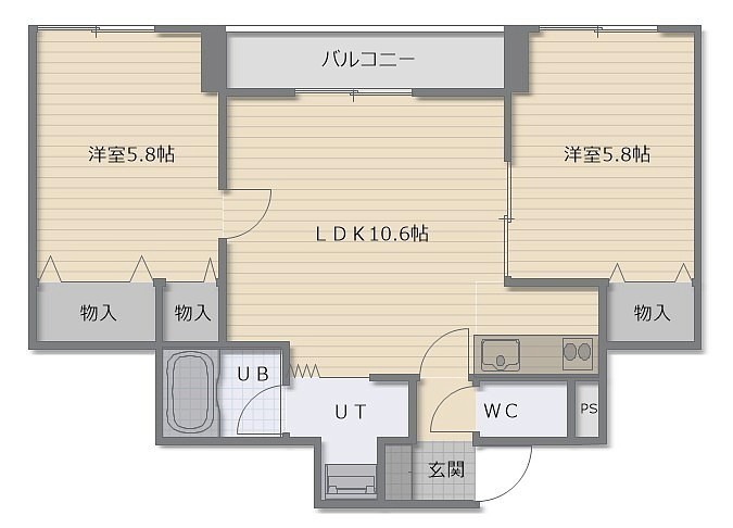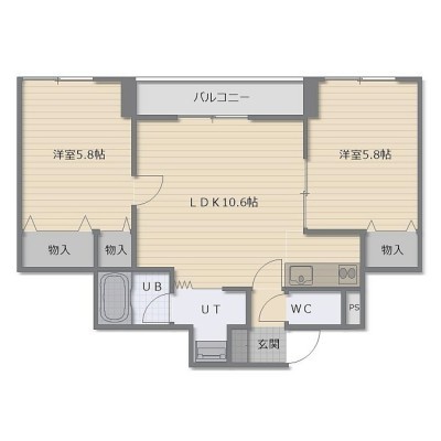 2LDK(51.57m²)└ LDK10.6帖 洋室5.8帖 洋室5.8帖