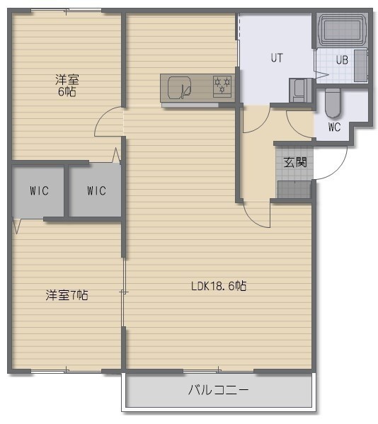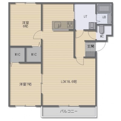 2LDK(68.67m²)└ LDK18.6帖 洋室7帖 洋室6帖
