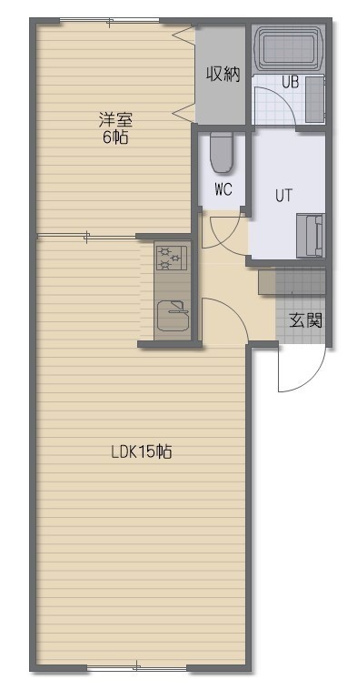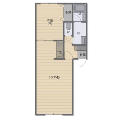 1LDK(47.1m²)└ LDK15帖 洋室6帖