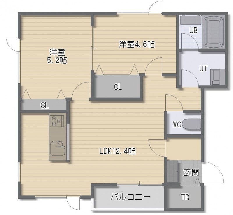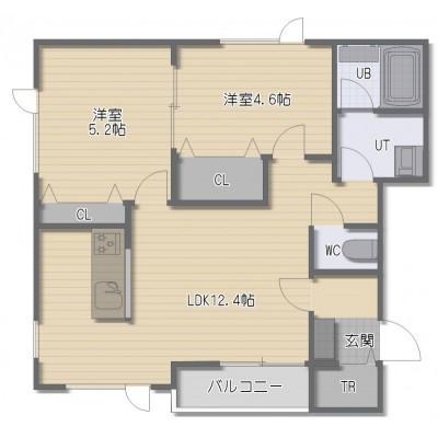 2LDK(50.8m²)└ LDK12.4帖 洋室5.2帖 洋室4.6帖