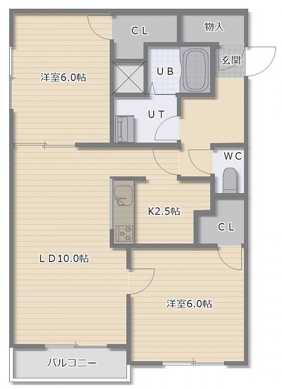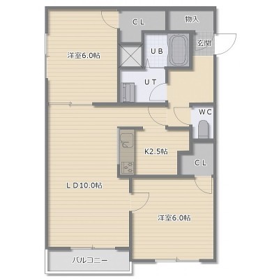 2LDK(60.39m²)└ LD10帖 洋室6帖 洋室6帖