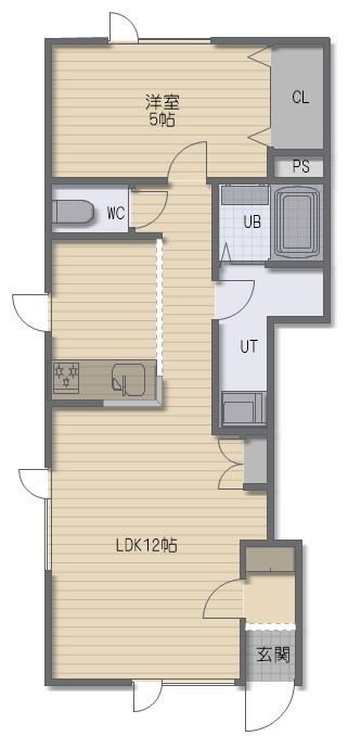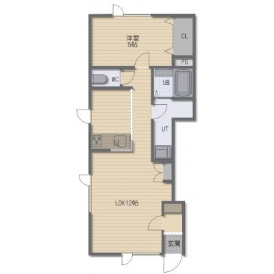1LDK(43.99m²)└ LDK12帖 洋室5帖