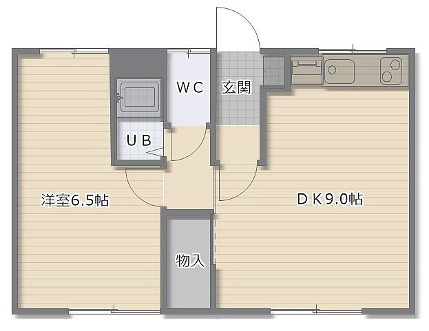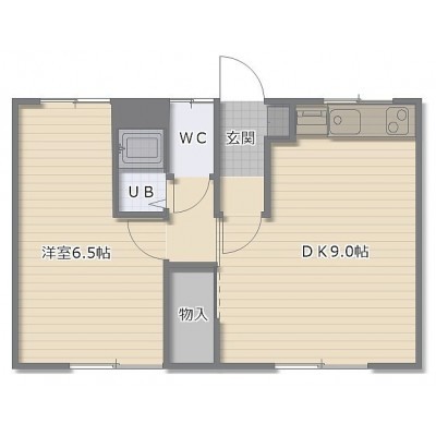 1DK(33.05m²)└ DK9帖 洋室6.5帖