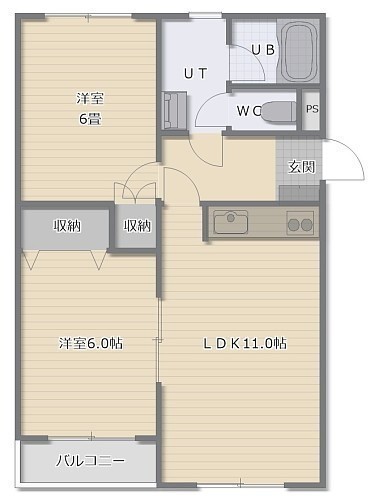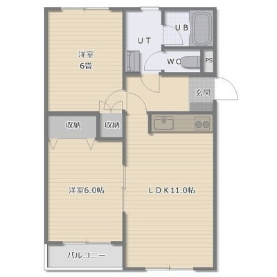 2LDK(57.8m²)└ LDK11帖 洋室6帖 洋室6帖