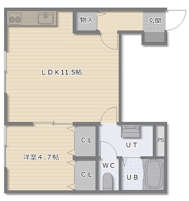 1LDK(39.95m²)└ LDK11.5帖 洋室4.7帖