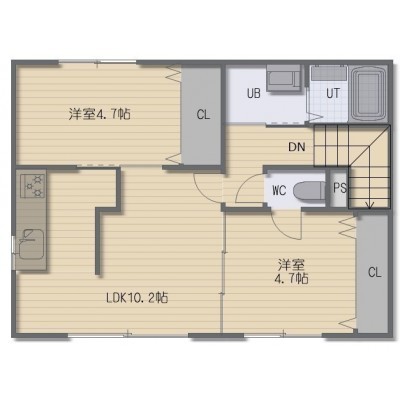 2LDK(51.65m²)└ LDK10.2帖 洋室4.7帖 洋室4.7帖