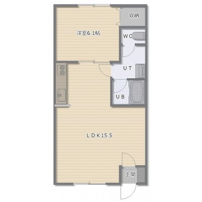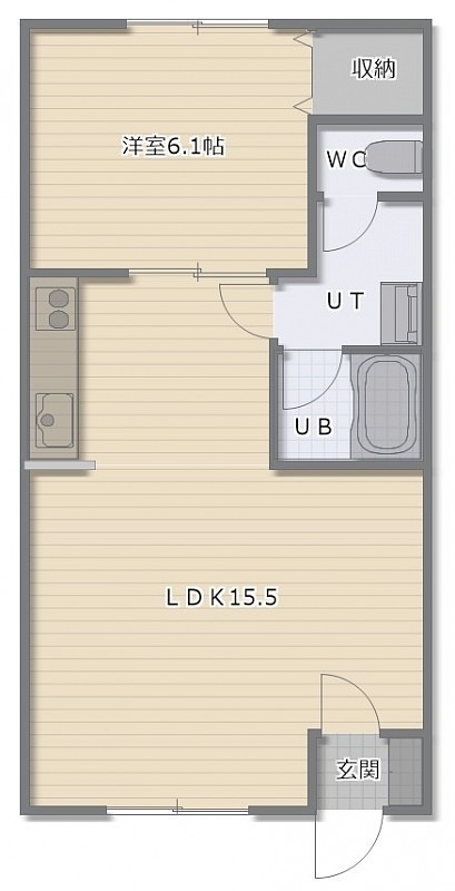 1LDK(45.55m²)└ LDK15.5帖 洋室6.1帖