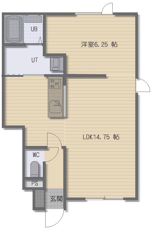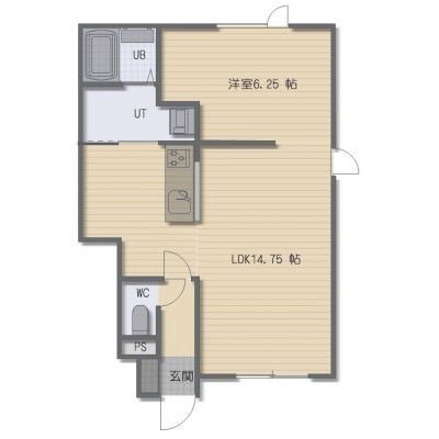 1LDK(46.9m²)└ LDK14.75帖 洋室6.25帖