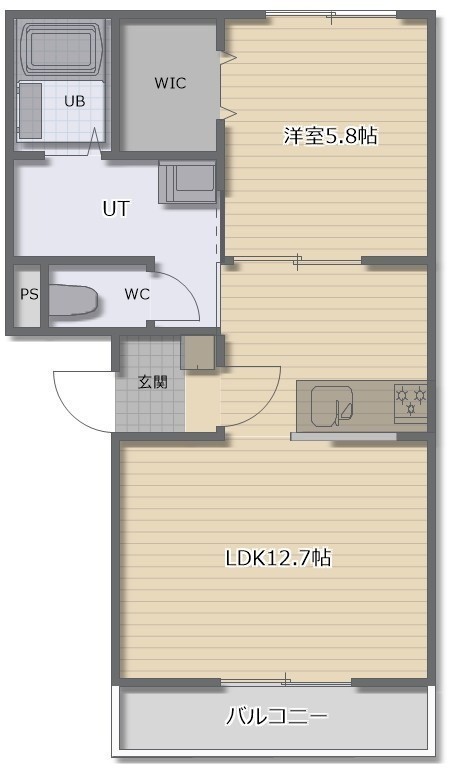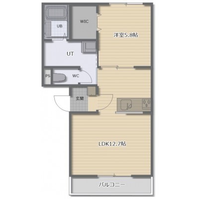 1LDK(43.44m²)└ LDK12.6帖 洋室5.8帖