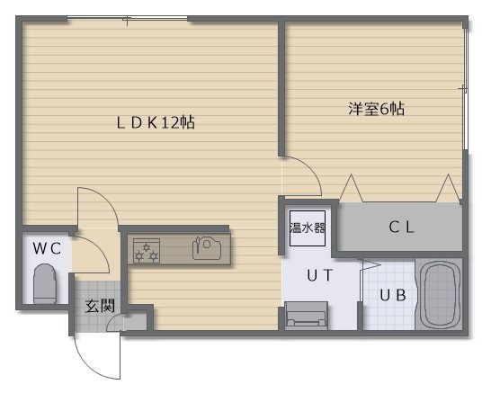 1LDK(42.23m²)└ LDK12帖 洋室6帖