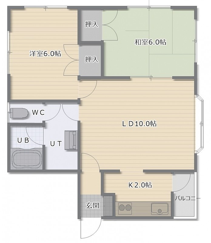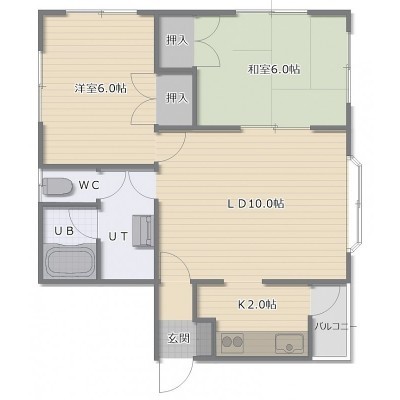 2LDK(45.36m²)└ LD10帖 K2帖 洋室6帖 和室6帖