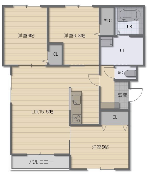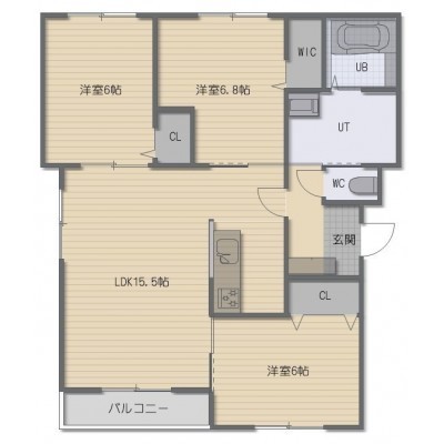3LDK(76.2m²)└ LDK15.5帖 洋室6.8帖 洋室6帖 洋室6帖