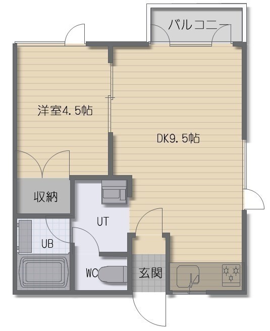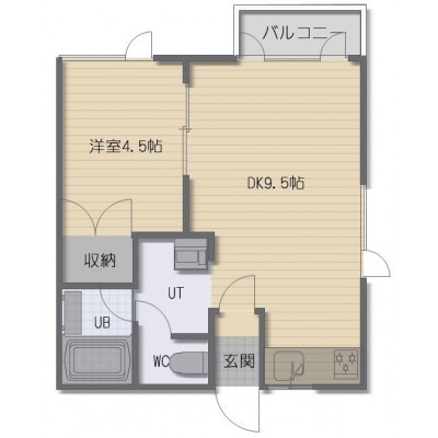 1DK(32.29m²)└ DK9.5帖 洋室4.5帖