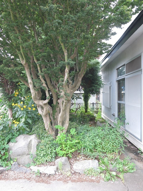 ここに注目!こんな言葉を聞いた事がないでしょうか?『耳にタコができる・・』 その意味は・・同じは無しを何度も何度も聞かされ、不快な気分になるのだそう・・ 隣の席で当店スタッフTの残像がニヤニヤしている・・その話は別として・・声を大きくして言いたいことがあるのですが・・函館で生まれた私としては、タコではなく 『イカ』 で言いたいものだ!なぜタコなのだろう?よくよく調べてみると・・海のタコではなく・・ペンだこやスポーツの練習等でできるタコを意味しているらしい・・ そもそもの店長の理論は間違っており・・新理論はこれにてお仕舞い・・・ とはいかず 何度もお伝えし・・耳タコ状態の情報かもしれませんが・・・山の手・・店長の地元です!小さい頃・・第2幼児公園大好きでした!そんな店長に・・山の手に貸家が出る!そんな情報が入ってしまったら・・まぁ・・すぐに行ってしまいますよね(/ω\) お伝えしたい事がたくさんありますよね!しかしコメント数にも限りがあり・・山の手の素晴らしさを、この貸家の良さをお伝えするには・・足りない!コメント数が足りない!だから・・思ったことを一言で言います!この貸家・・ 木が大きい・・