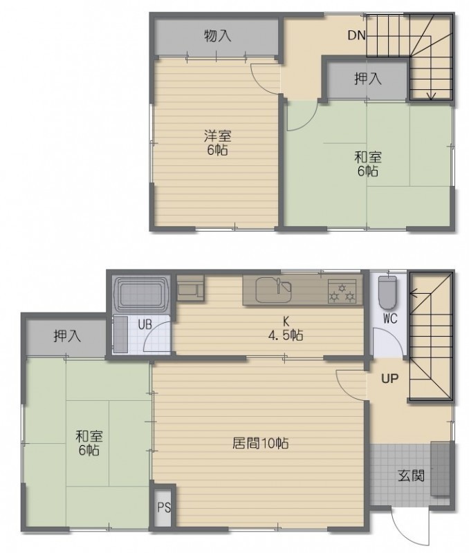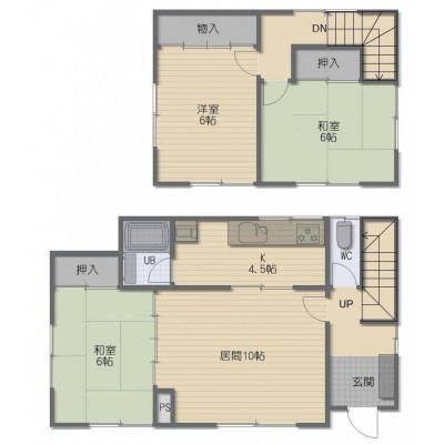 3LDK└ 1階:LD10帖 K3帖 和室6帖 / 2階:和室6帖 洋室6帖