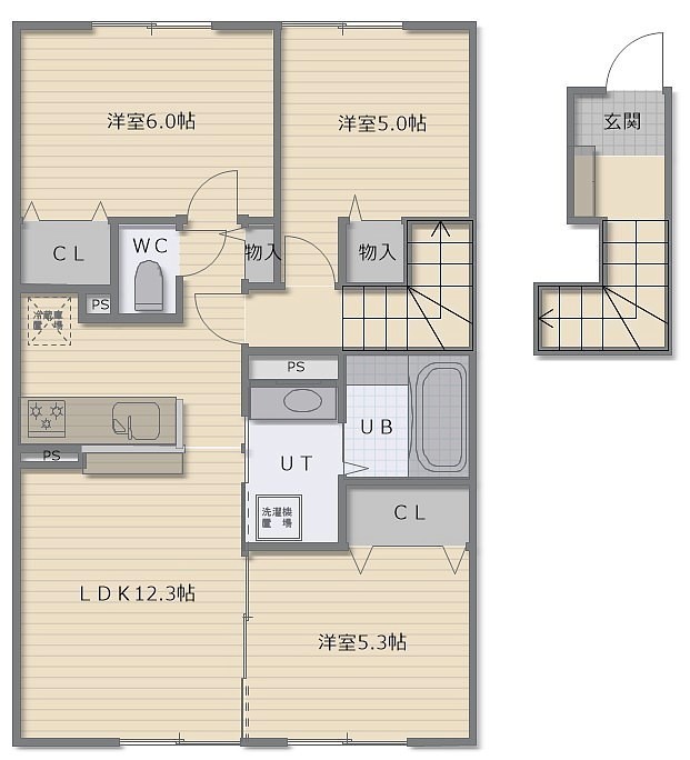 3LDK(69.14m²)└ LDK12.3帖 洋室6帖 洋室5.3帖 洋室5帖