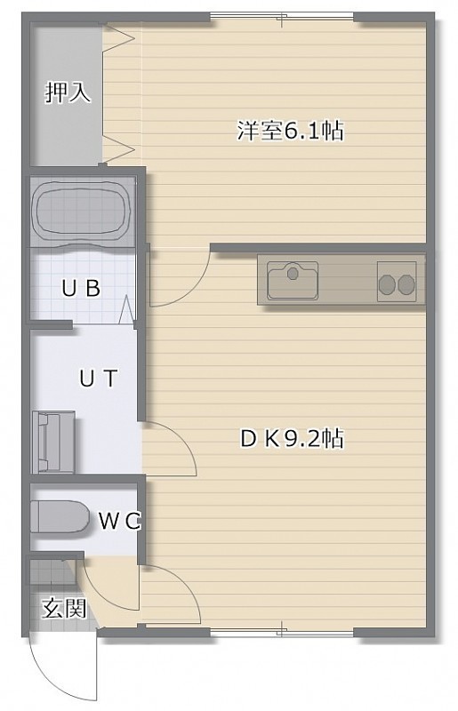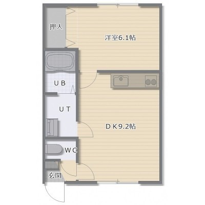 1LDK(34.38m²)└ LDK9.2帖 洋室6.1帖