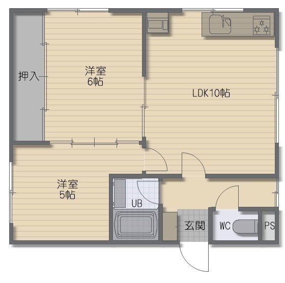 2LDK(42.97m²)└ LDK10帖 洋室6帖 洋室5帖