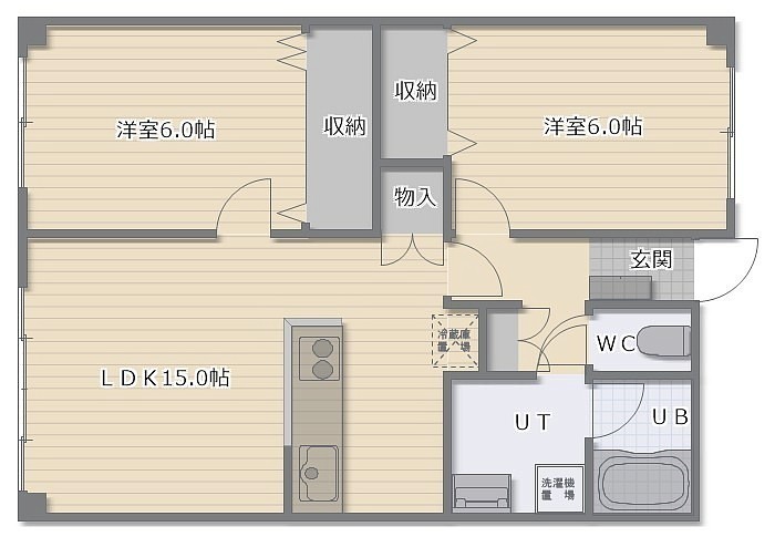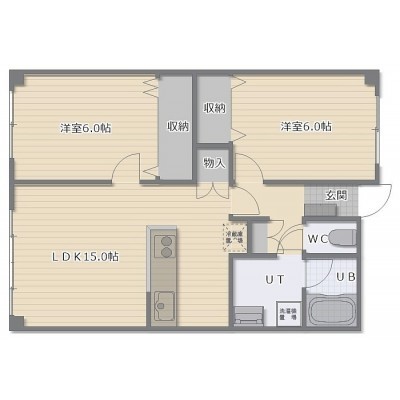 2LDK(64.47m²)└ LDK15帖 洋室6帖 洋室6帖