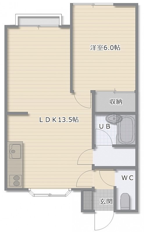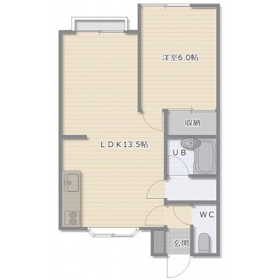 1LDK(40.91m²)└ LDK13.5帖 洋室6帖