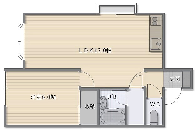 1LDK(40.91m²)└ LDK13帖 洋室6帖