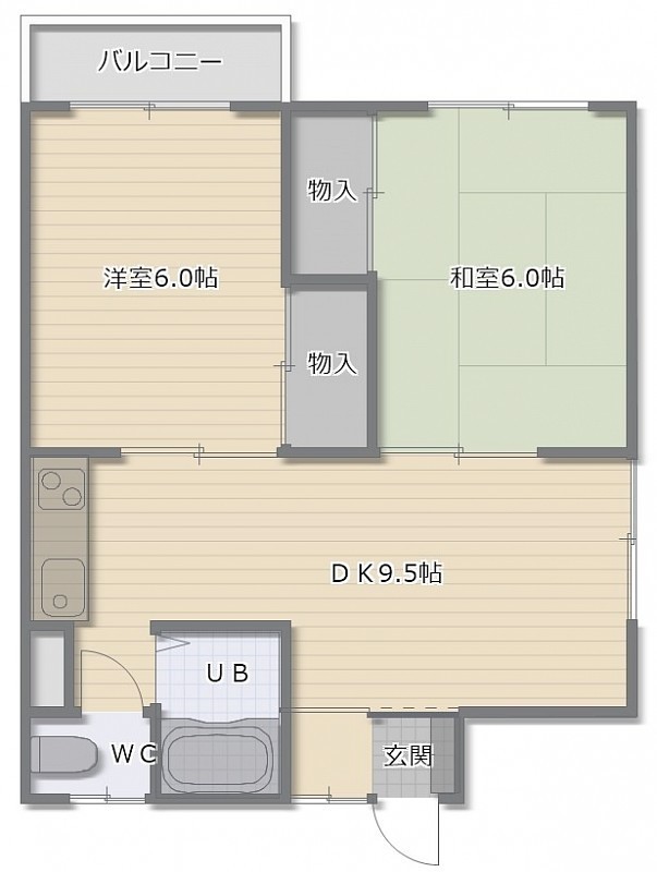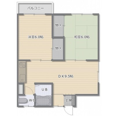 2DK(44.62m²)└ DK9.5帖 和室6帖 洋室6帖