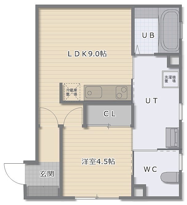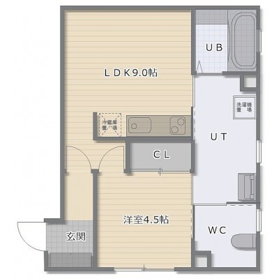 1DK(40.29m²)└ DK9帖 洋室4.5帖