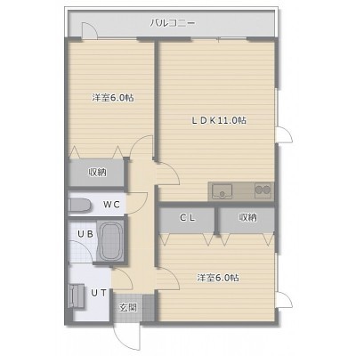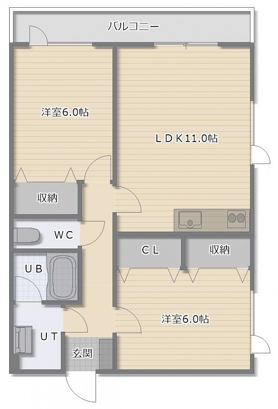2LDK(55.07m²)└ LDK11帖 洋室6帖 洋室6帖