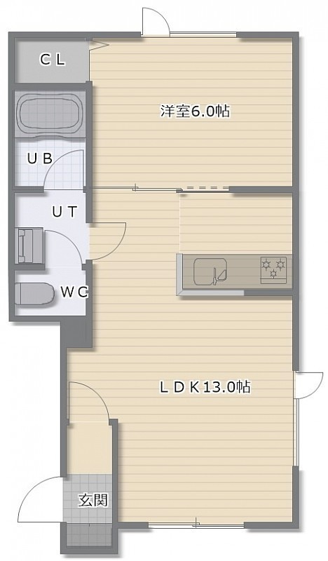 1LDK(38.84m²)└ LDK13帖 洋室6帖