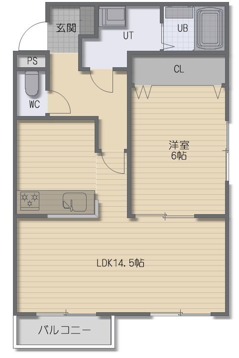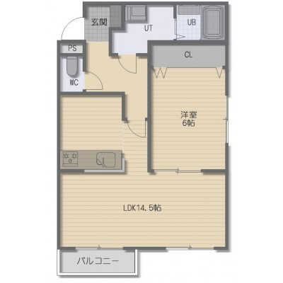 1LDK(48.6m²)└ LDK14.5帖 洋室6帖