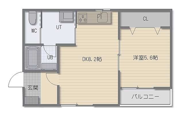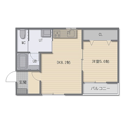 1LDK(33.95m²)└ LDK8.2帖 洋室5.6帖