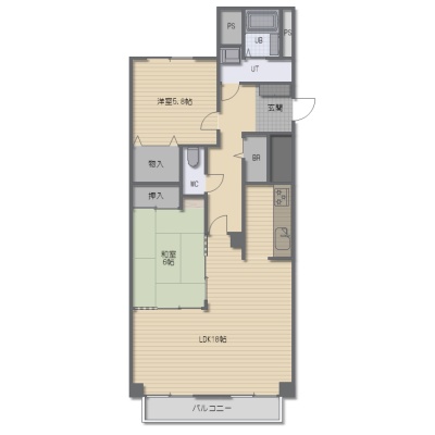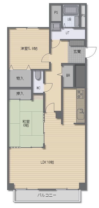2LDK(70m²)└ LDK18帖 和室6帖 洋室5.9帖