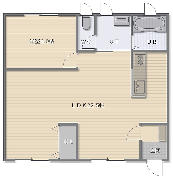 1LDK(59.62m²)└ LDK22.5帖 洋室6帖
