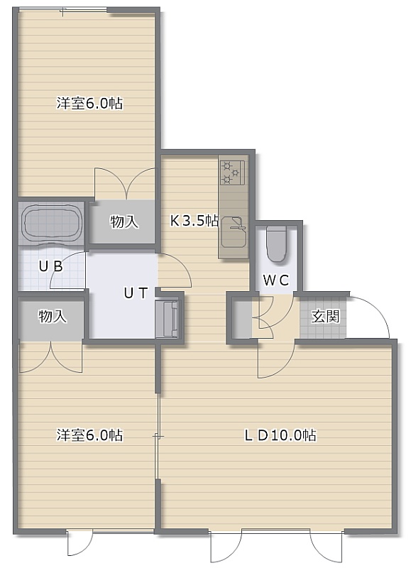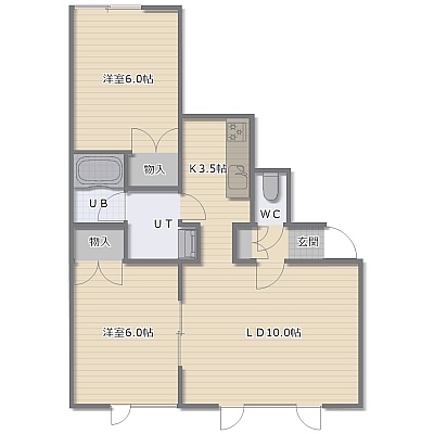 2LDK(54m²)└ LDK13.5帖 洋室6帖 洋室6帖