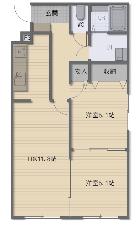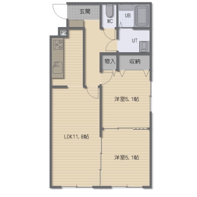 2LDK(51.07m²)└ LDK11.8帖 洋室5.1帖 洋室5.1帖