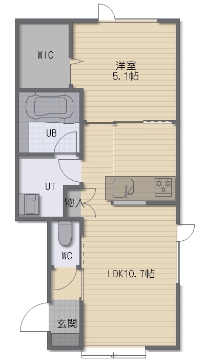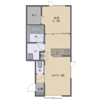 1LDK(38.51m²)└ LDK10.7帖 洋室5.1帖