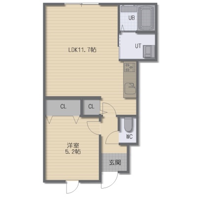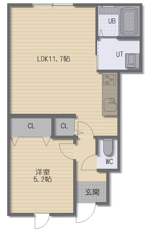 1LDK(45.95m²)└ LDK11.7帖 洋室5.2帖