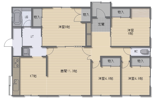 4LDK(102.68m²)└ LDK18.3帖 洋室8帖 洋室6帖 洋室4.8帖 洋室4.8帖