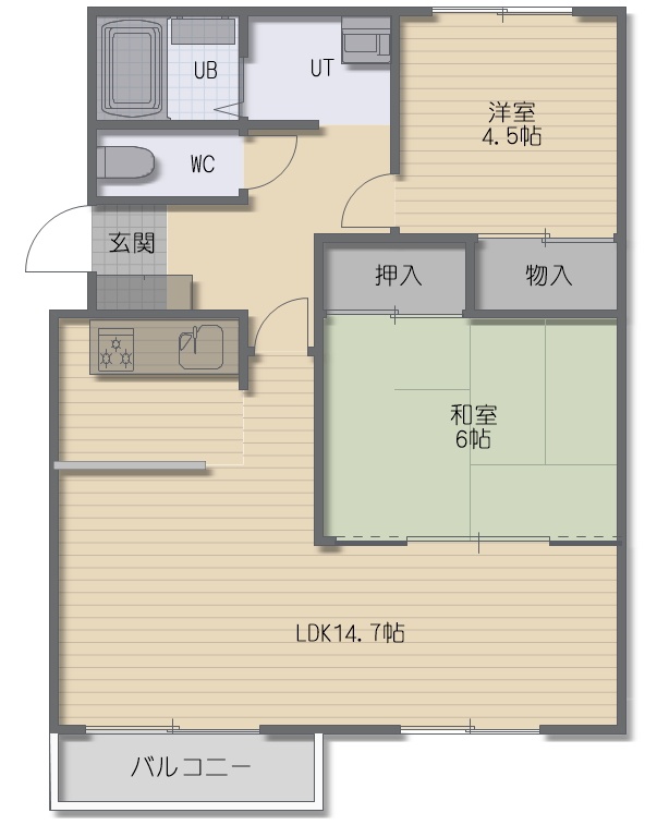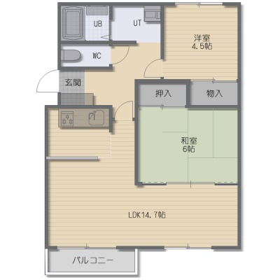 2LDK(63.42m²)└ LDK14.7帖 和室6帖 洋室4.5帖