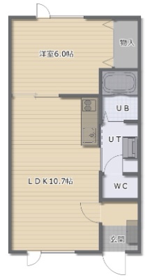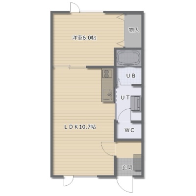 1LDK(38.34m²)└ LDK10.7帖 洋室6帖
