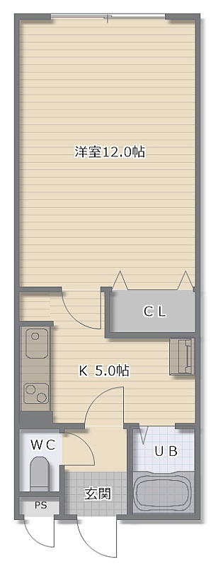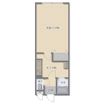 1K(34.65m²)└ 洋室12帖 K5帖