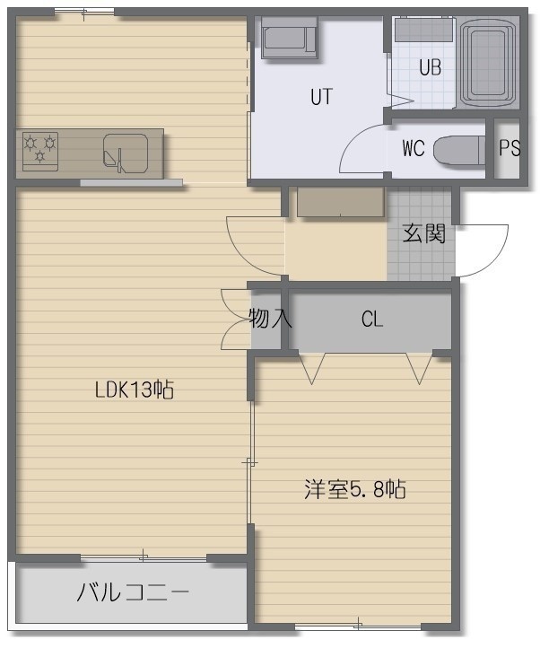 1LDK(41m²)└ LDK13帖 洋室5.8帖