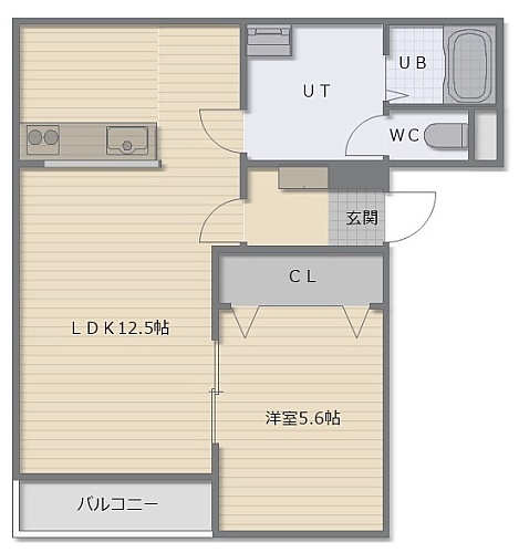 1LDK(45.68m²)└ LDK12.5帖 洋室5.6帖