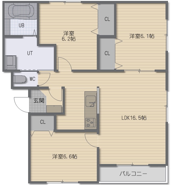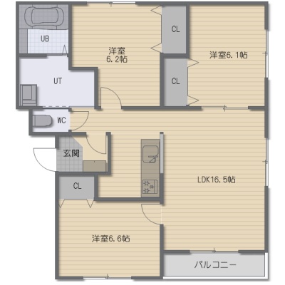 3LDK(78.63m²)└ LDK16.5帖 洋室6.6帖 洋室6.2帖 洋室6.1帖