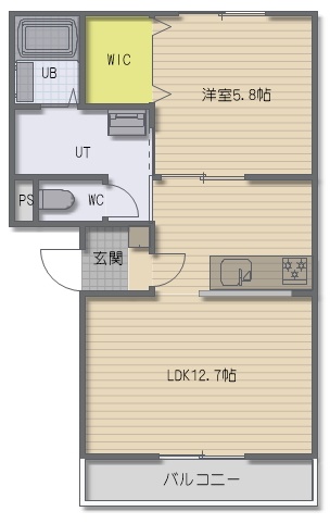 1LDK(43.44m²)└ LDK12.7帖 洋室5.8帖