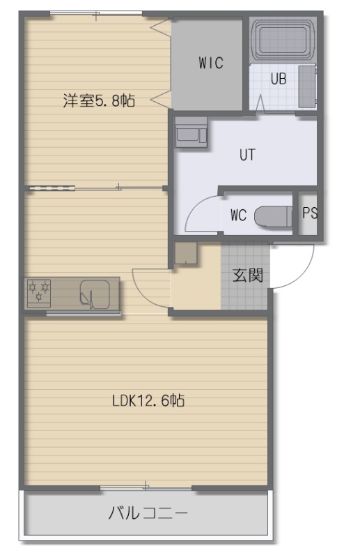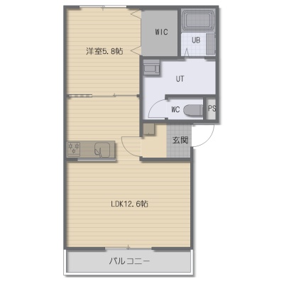 1LDK(43.44m²)└ LDK12.6帖 洋室5.8帖