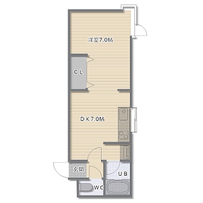 1DK(32.64m²)└ DK7帖 洋室7帖