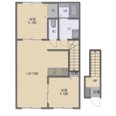 2LDK(52.17m²)└ LDK13帖 洋室5.2帖 洋室4.5帖